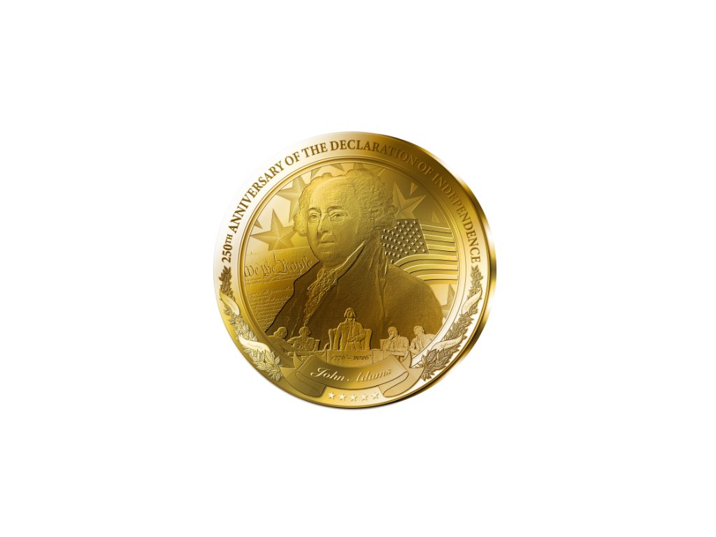 Tato zlatá mince připomíná 250. výročí nezávislosti Spojených států. Tato mince je součástí 3 dílného kompletu mincí, který je věnován otcům zakladatelům, kteří stáli za přípravou Deklarace nezávislosti v roce 1776. Tato mince je věnována Johnu Adamsovi. John Adams byl jedním ze signatářů Deklarace nezávistosti, kterou pomáhal vypracovat, v květnu 1776 přednesl usnesení na vytvoření deklarace nezávislosti na Británii. Krátce poté byl vášnivým zastáncem Deklarace. V letech 1778-1788 působil jako diplomat v Evropě, v letech 1789-1797 byl 1. viceprezident George Washingtona a v letech 1797-1801 byl druhým prezidentem USA.