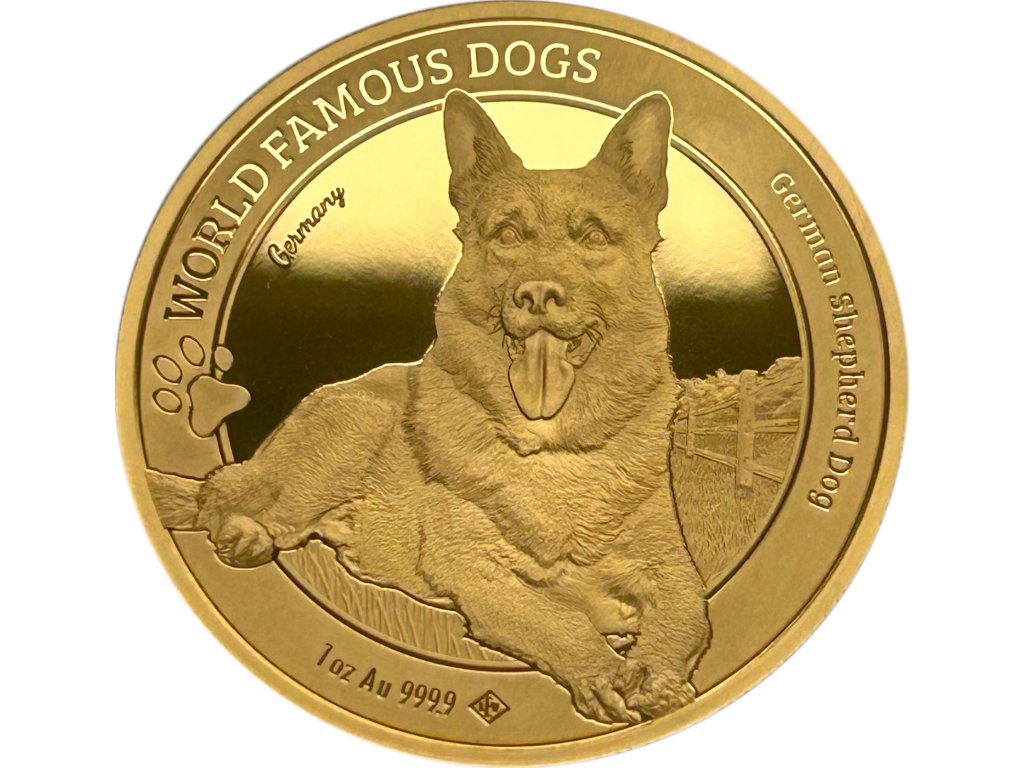 1 oz zlatá mince World Famous Dogs - německý ovčák 2025 BU Leipziger Edelmetallverarbeitung