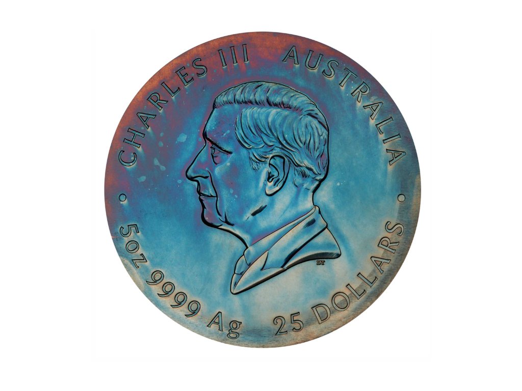 Na hodnotové straně mince je vyobrazen portrét krále Charlese III, hmotnost „5oz“ a ryzost „9999 Ag“, vydávající země "AUSTRALIA" a také nominální hodnota „25 DOLLARS“.