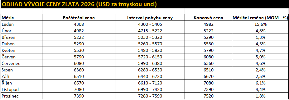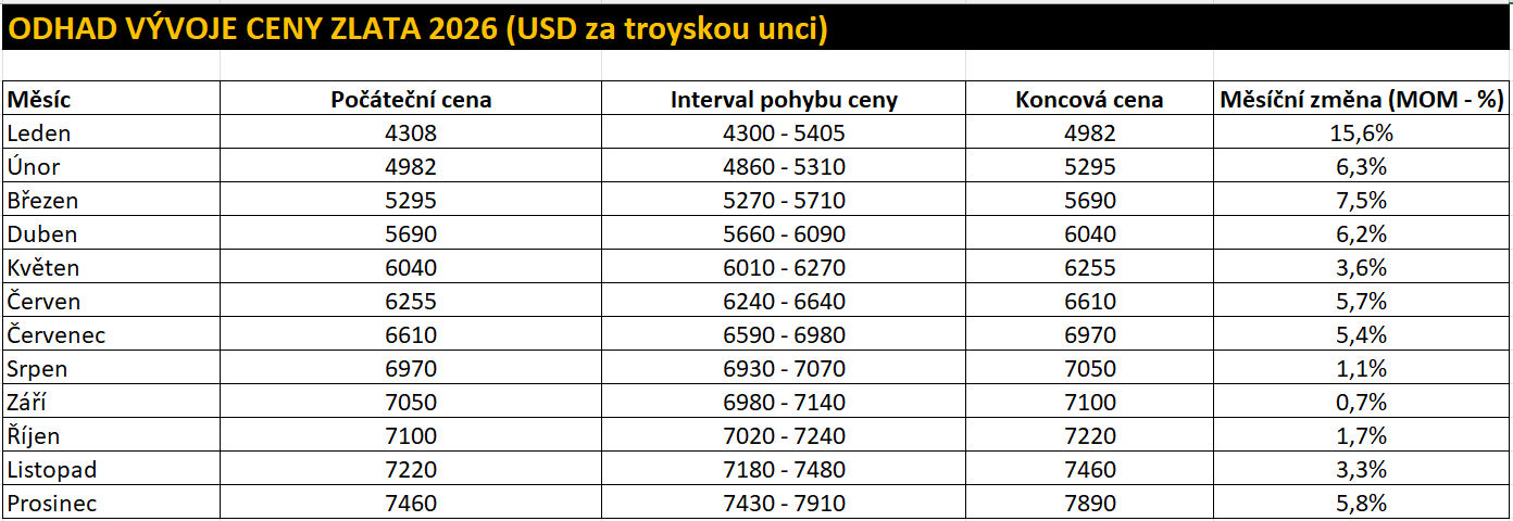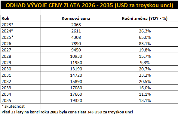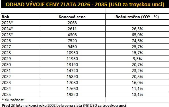 Odhad vývoje ceny zlata