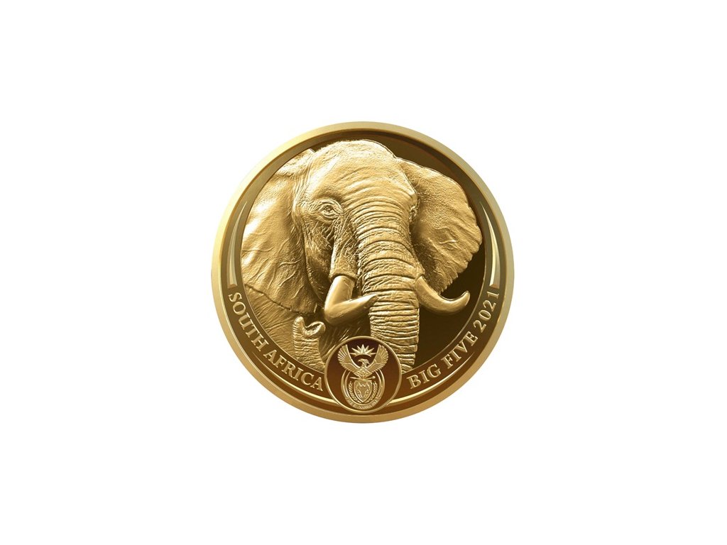 Rubová strana zobrazuje plně dospělého slona s jeho kly. Níže vidíte zemi původu „SOUTH AFRICA“, název série „BIG FIVE“ a rok vydání „2021“. Hodnotovou stranu zlaté mince zdobí dvě poloviny portrétu slona. Mezi těmito portréty je v kroužku uvedena nominální hodnota "FIFTY RAND", hmotnost "1oz" a ryzost "Au999.9".