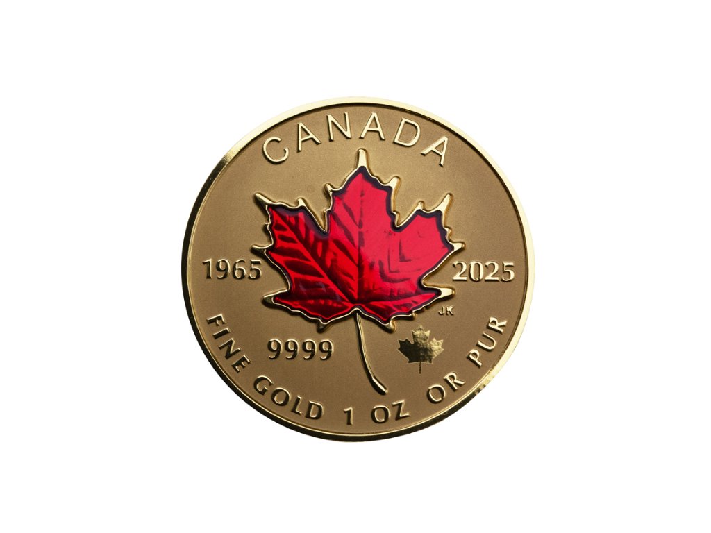 Rubová strana zobrazuje ikonický symbol javorového listu. Roky „1965-2025“ jsou věnovány 60. výročí kanadské vlajky. Jako zvláštní zvýraznění je na 1 oz zlaté minci proveden javorový list v průsvitném červeném smaltu. Motiv je orámován nápisem "CANADA" a příslušnou hmotností a ryzostí "9999 FINE GOLD". Na hodnotové straně je portrét Jejího Veličenstva královny Alžběty II z roku 1965 od Arnolda Machina a nominální hodnota.